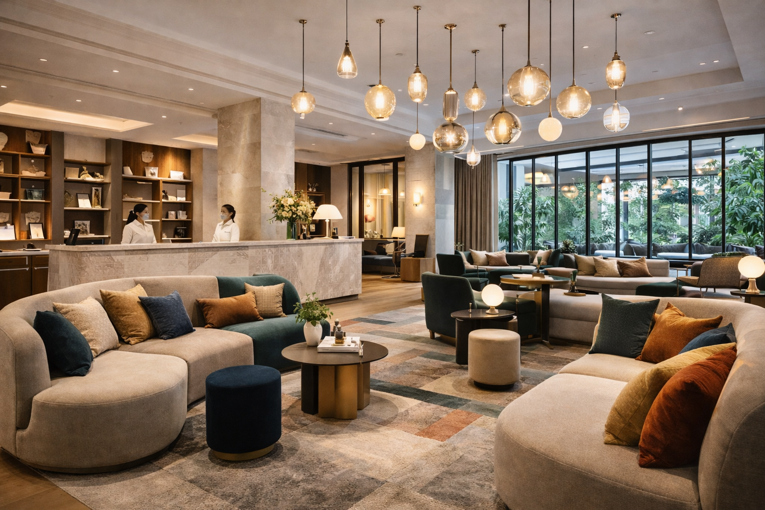 全体的に落ち着いた空間で、京都中心部で上質なホテルステイを楽しめるラグジュアリーホテルです。