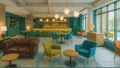 - バーやテラス、アート作品に囲まれた共有空間が魅力で、滞在の楽しみを味わえる